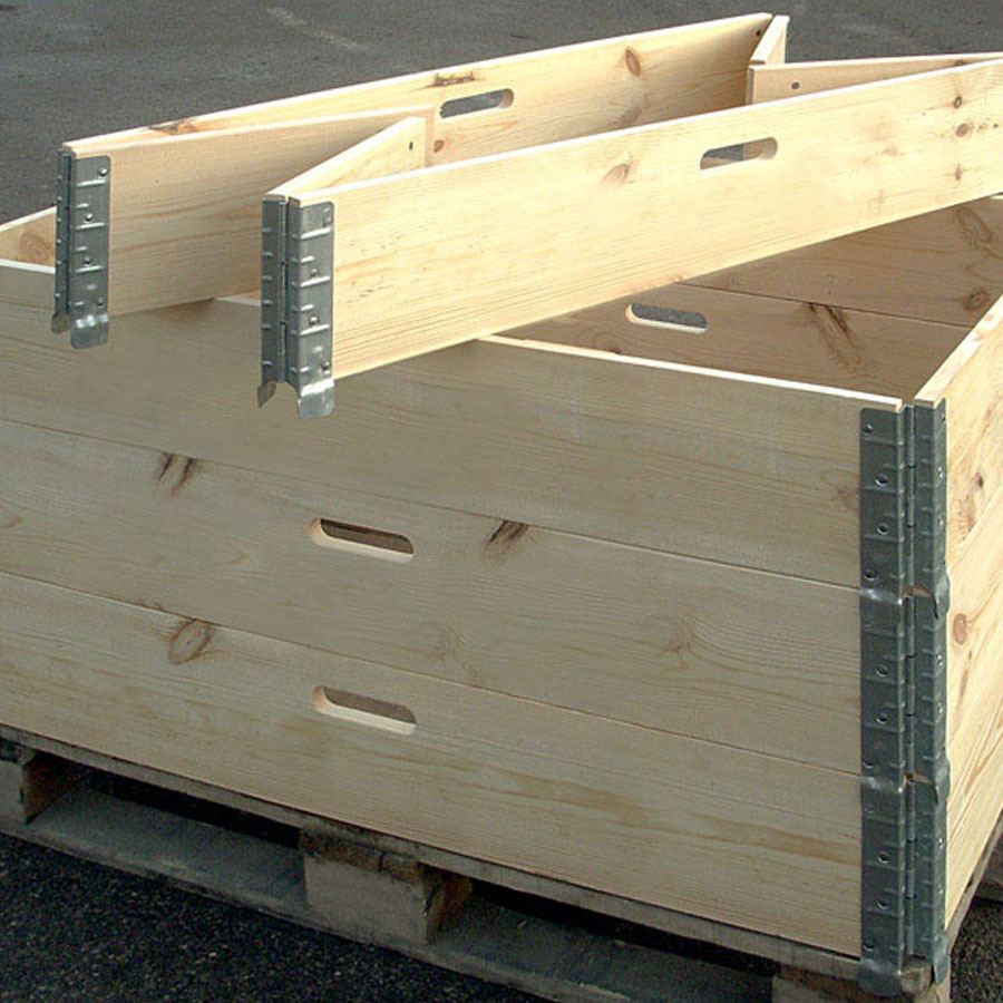 In combination with our pallets and lids our push-on frames make ideal containers that provide optimal protection to the transported goods. After use, the push-on frames can be folded diagonally, making them ideal for empty transport and space-saving storage.